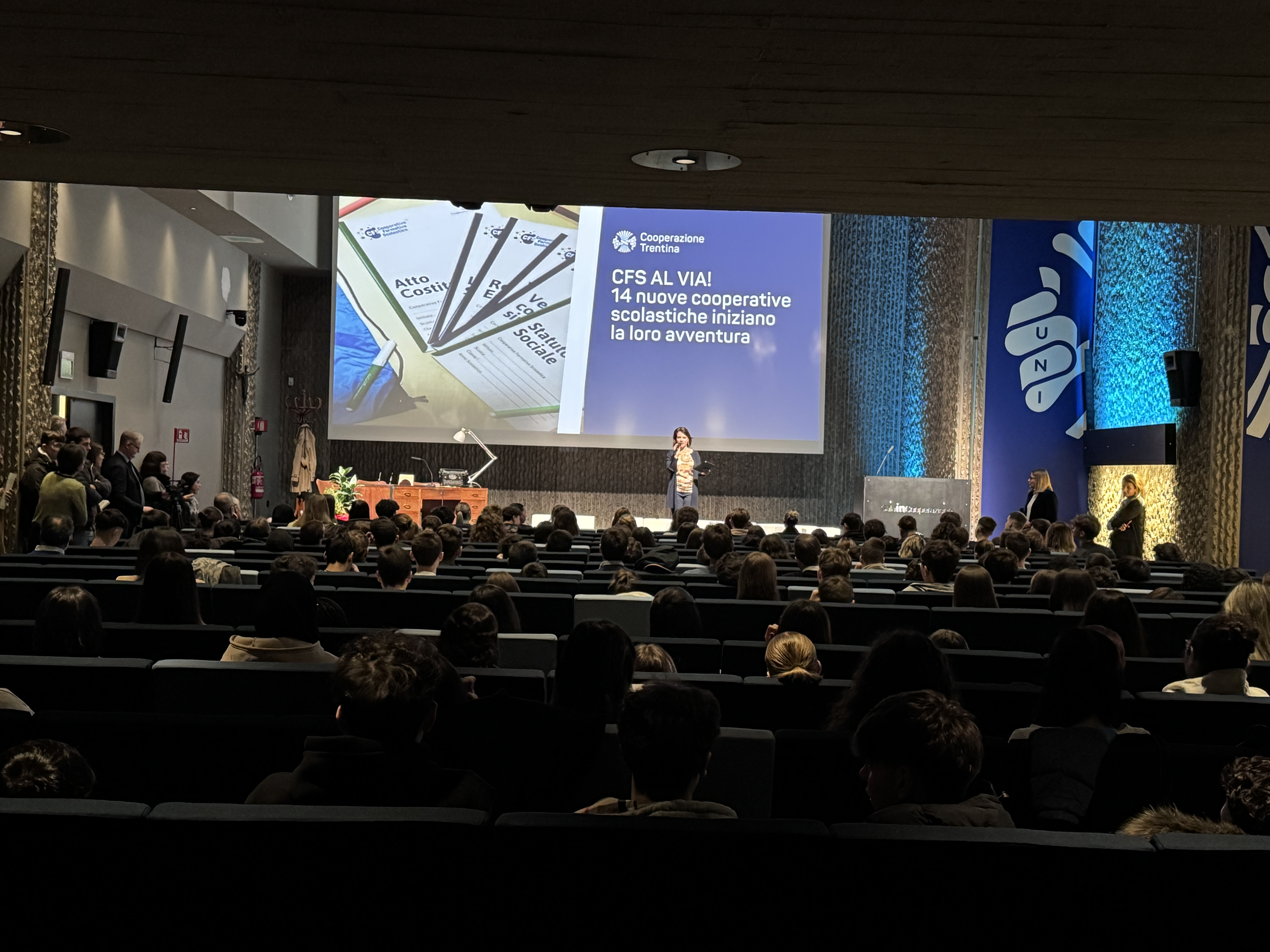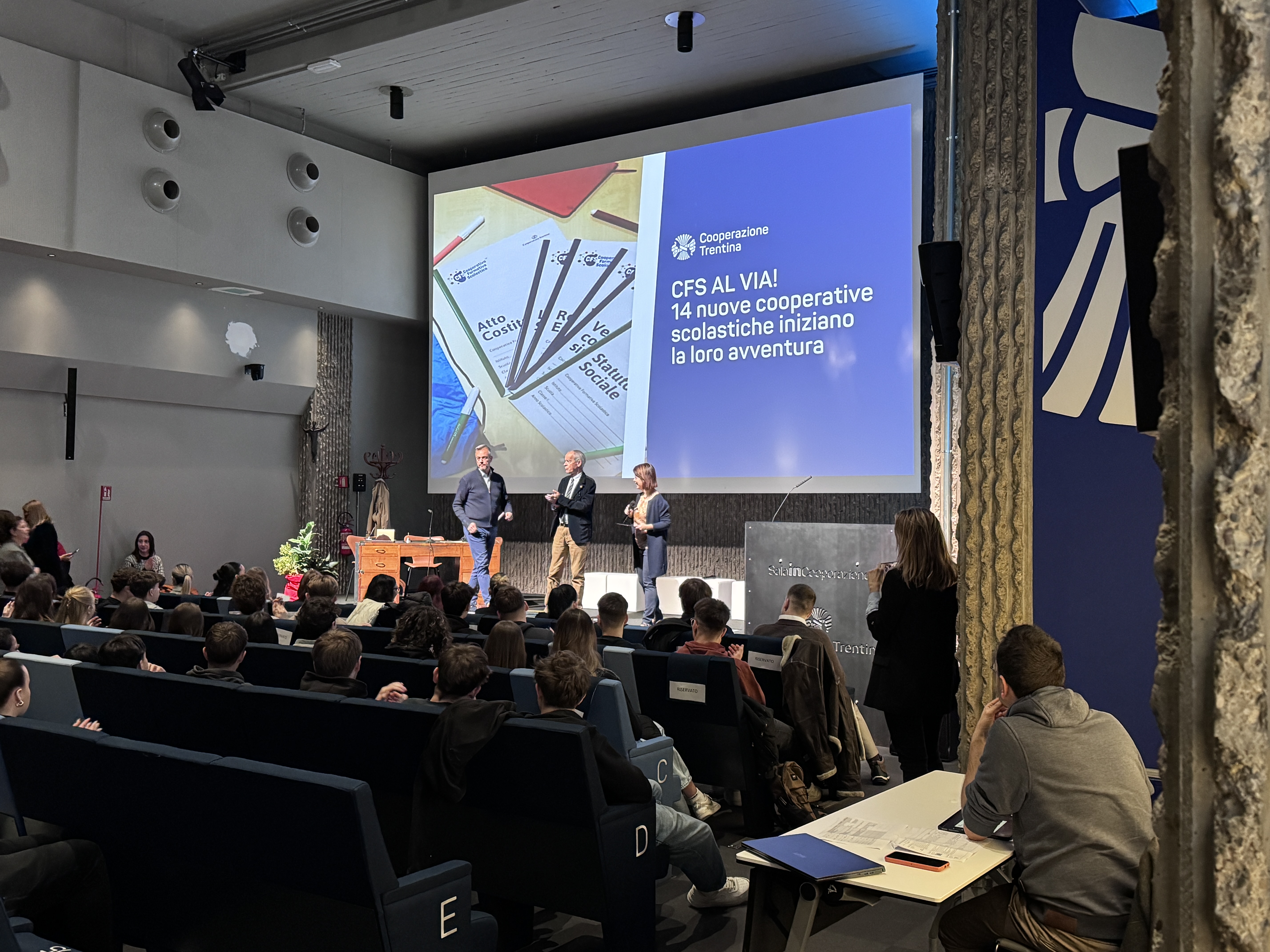 Oltre 280 studenti e studentesse hanno affollato stamani la sala inCooperazione per la costituzione formale delle proprie cooperative formative scolastiche, alla presenza dei vertici della Cooperazione Trentina. Con la firma dell’atto costitutivo hanno preso quindi ufficialmente il via i progetti di alternanza scuola-lavoro per 14 classi di sei istituti superiori della provincia di Trento.