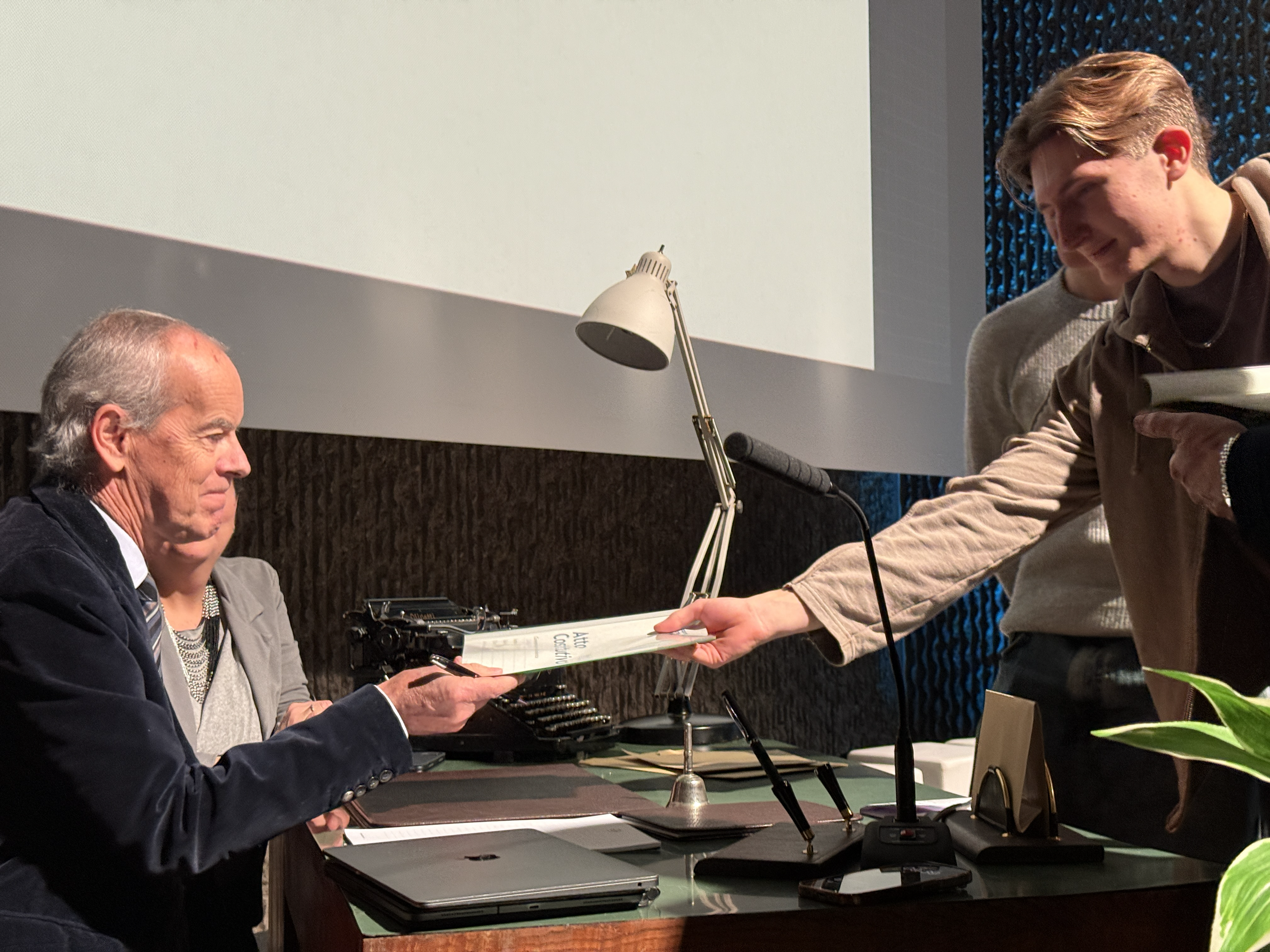 Intelligenza del futuro, promozione del territorio, marketing e sostenibilità sono i temi che identificano i progetti delle 14 cooperative formative scolastiche costituite quest’anno da altrettante classi terze di sei istituti superiori della provincia di Trento. Quattordici cooperative simulate, per un totale di 280 giovani soci e socie, che nei mesi scorsi hanno definito, votando in assemblea , il proprio nome, logo e, soprattutto, scopo sociale, ovvero il progetto di alternanza scuola-lavoro da sviluppare nel corso del biennio. E stamani, durante una cerimonia a loro dedicata in sala inCooperazione, si sono costituite formalmente con la firma dell’atto costitutivo da parte di tre “notai” d’eccezione il presidente della Federazione Trentina della Cooperazione Roberto Simoni, il direttore generale Alessandro Ceschi e la responsabile dell’Area Formazione e Cultura Cooperativa Jenny Capuano.