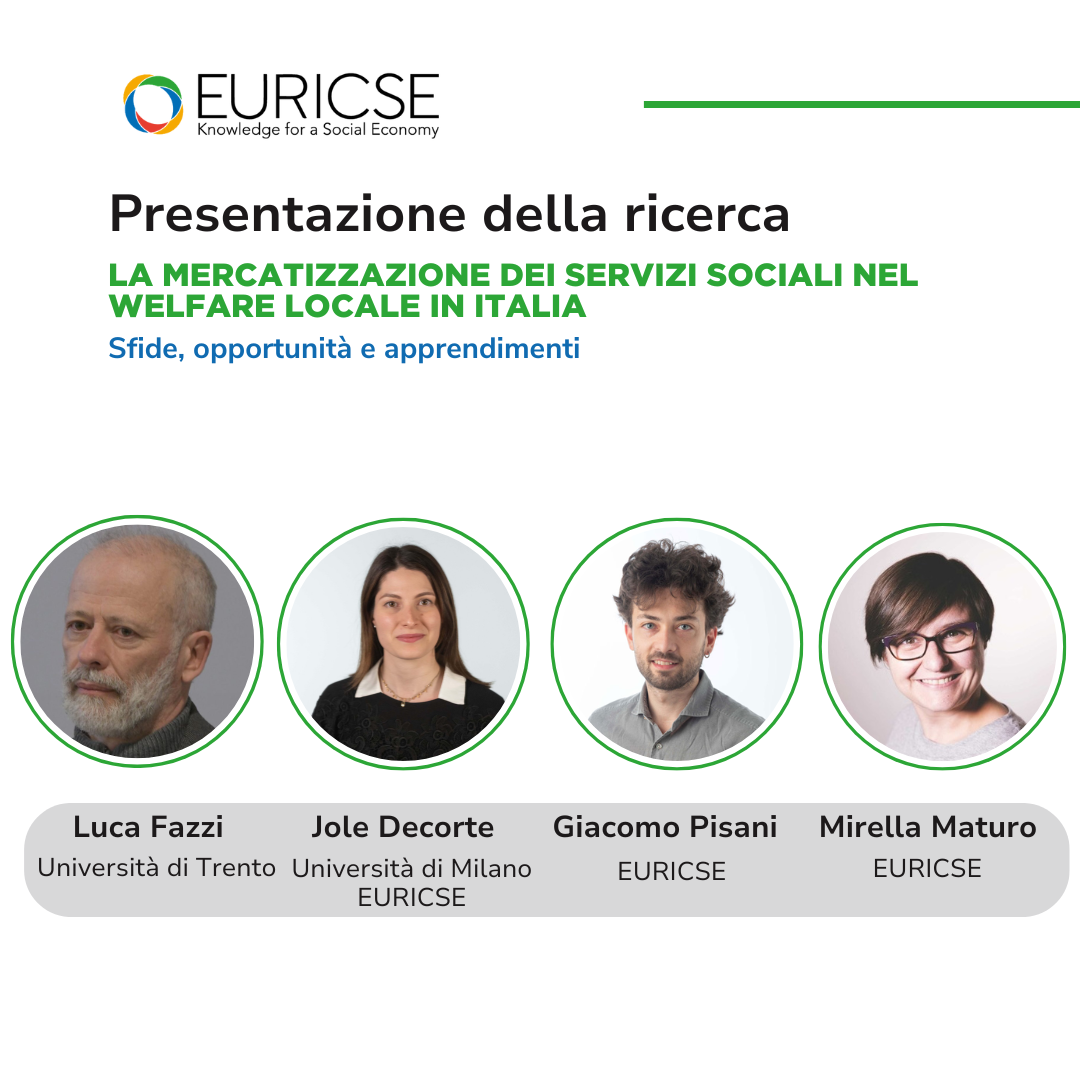 Lo studio è stato curato dal gruppo di lavoro composto da Luca Fazzi (Università di Trento), coordinatore scientifico, insieme ai ricercatori di EURICSE Jole Decorte, Mirella Maturo e Giacomo Pisani. La ricerca è stata sviluppata da EURICSE nell’ambito dell’Accordo di Programma con la Provincia autonoma di Trento. In occasione della presentazione del rapporto, oltre al team di ricerca, hanno portato il loro contributo rappresentanti del mondo della cooperazione e dell’impresa sociale, per approfondire opportunità, criticità e prospettive legate a questa trasformazione. Sono intervenuti Francesca Scarinci (Consorzio CGM), Alessandro Micich (Cooperativa Cadiai, Bologna) e Maurizio Gozzi (Cooperativa 3C Salute, Reggio Emilia).