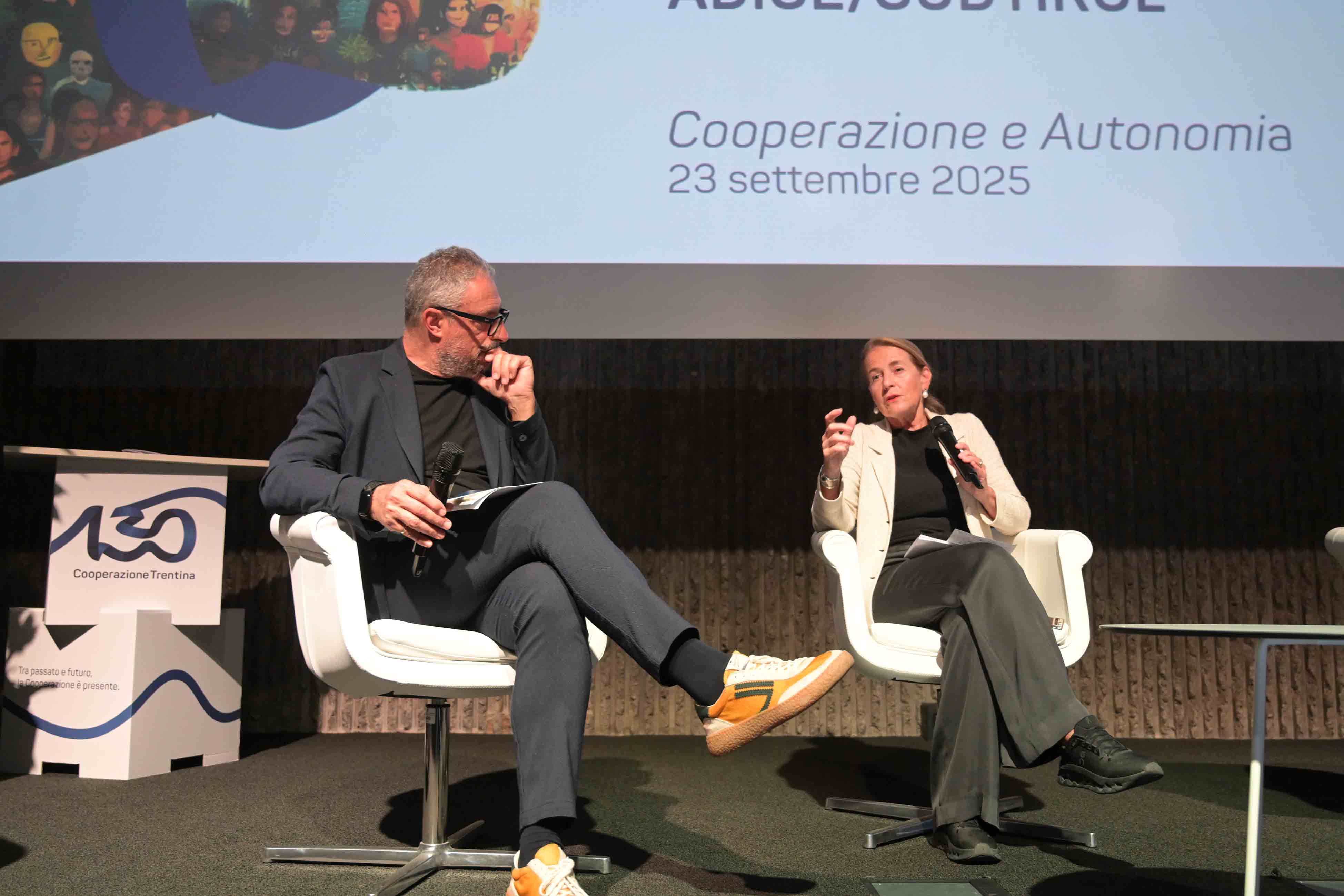 Il dialogo si è concentrato su come autonomia e cooperazione possano continuare a camminare insieme, affrontando questioni istituzionali ma anche casi concreti come il Progettone, i servizi sociali e il ruolo delle comunità.